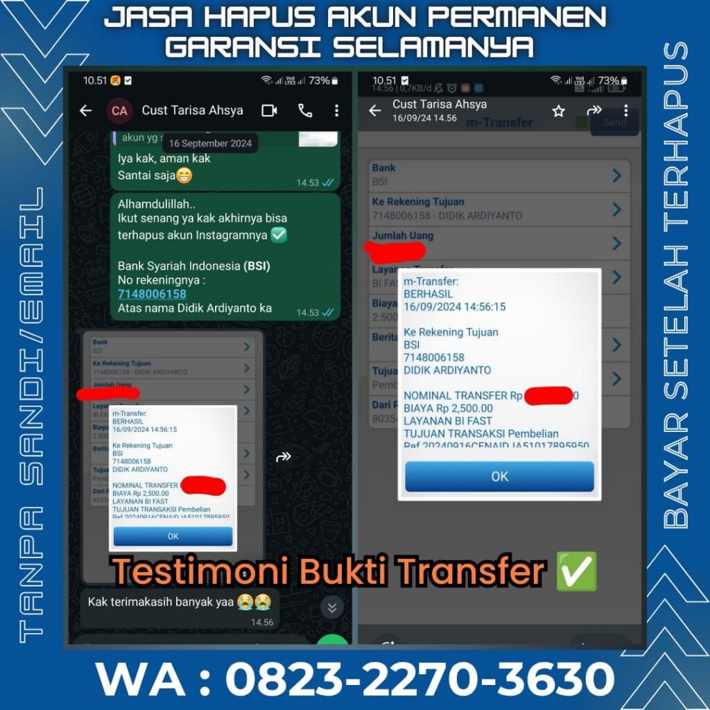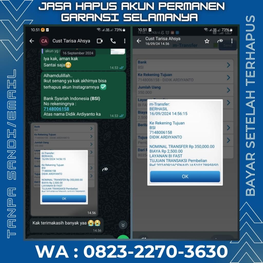 ✨️ Kami open jasa hapus akun IG, FB, X dan sosmed lain tanpa sandi & tanpa email. Profesional, Privasi anda aman dan kami berpengalaman lebih dari 5 tahun sejak 2019. Admin siap menghapus akun IG, FB, X dll anda dengan aman & profesional.